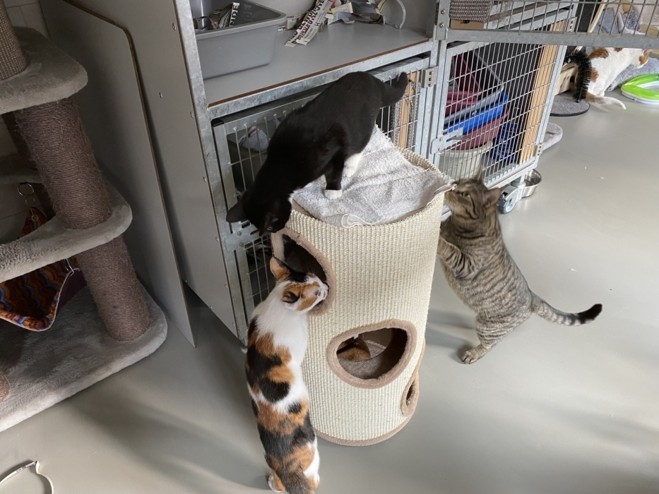 U moet dus tegen een stootje kunnen, en de kat in huis moet ook tegen een stootje kunnen. Mimis heeft een stevig lief speelmaatje nodig.